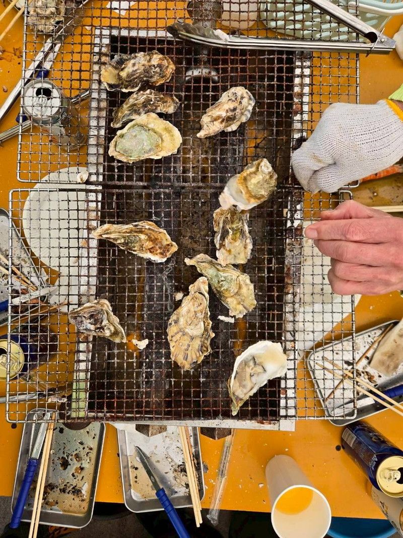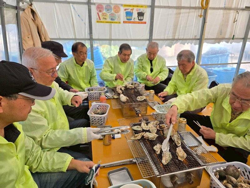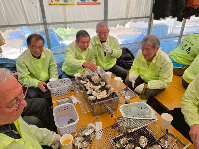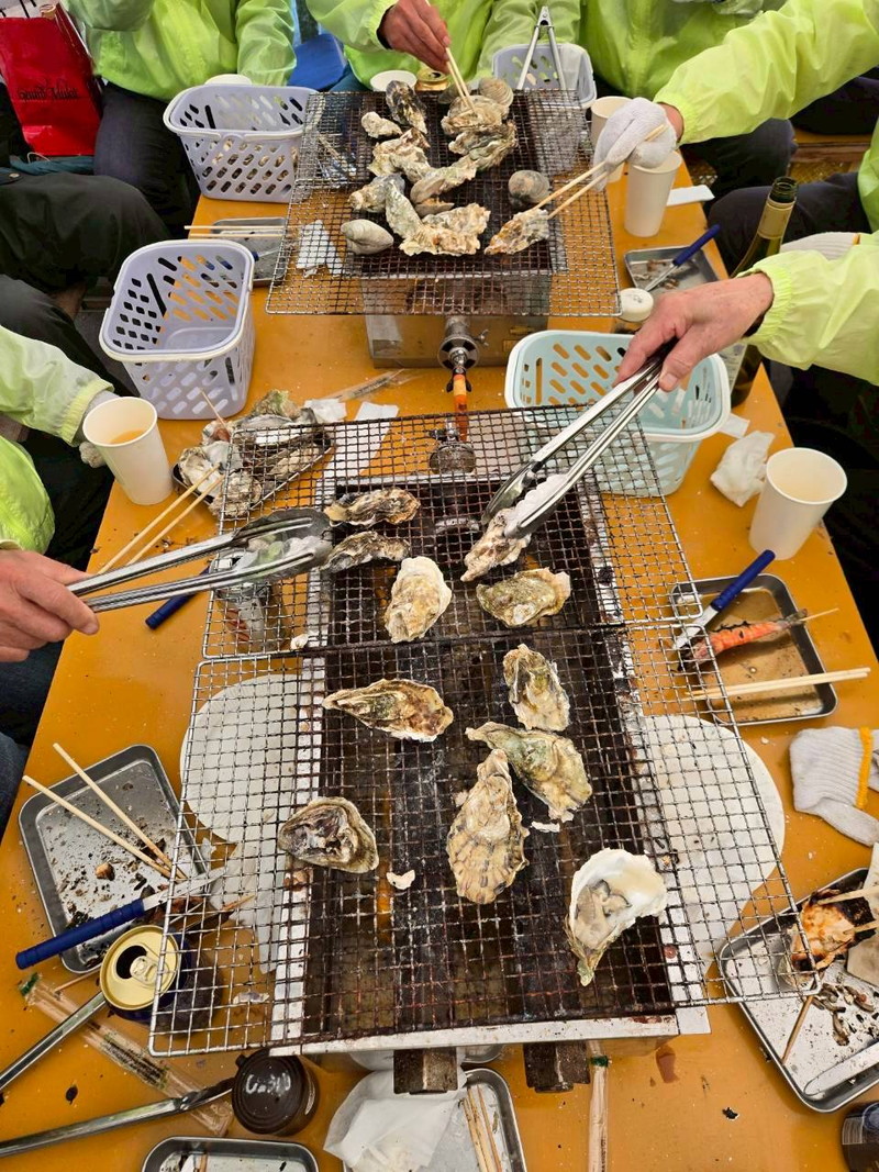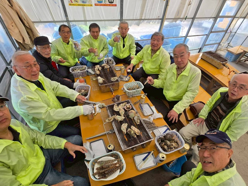 2026年3月7日に、参加者11名で、今では恒例となりました牡蠣小屋パーティを行いました。 今回は久しぶりに糸島・福吉へと足を伸ばし、「飛龍丸」さんにお世話になりました。 当日は、すこし風は冷たかったですが、絶好の行楽日和。 食材用意で現地集合の森さん、松本さんら先発隊と、福吉駅から徒歩で向かう金子さん、山本さんら後発隊に分かれて集合しました。 後発隊の海沿いの道を歩く10数分は、爽やかな海風が心地よく、期待が膨らみます。 「持ち込み自由」というお店の厚意に甘え、加来さん・中村さんらが厳選したお酒が並びました。 炭火で焼かれる牡蠣、エビ、ハマグリ、サザエの香りに、お酒も会話も止まりません。 気づけばあっという間の2時間でした。 お店の家族的な雰囲気のおかげで、最後は全員最高の笑顔で集合写真を撮影し、無事に散会となりました。 今回は11名と少人数でしたが、もっと多くの方に楽しんでいただけるように考えていきたいと思います。 (レポーター 平川さん) |